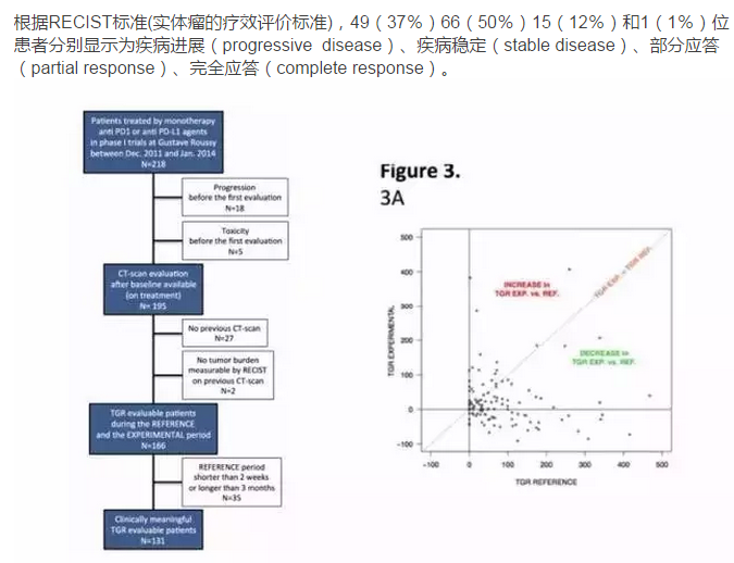 根據(jù)RECIST標(biāo)準(zhǔn)(實體瘤的療效評價標(biāo)準(zhǔn)),49(37%)66(50%)15(12%)和1(1%)位患者分別顯示為疾病進(jìn)展(progressive disease)、疾病穩(wěn)定(stable disease)、部分應(yīng)答(partial response)、完全應(yīng)答(complete response)。