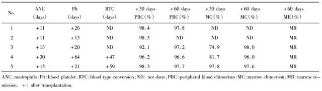 表4 白血病患兒造血重建情況