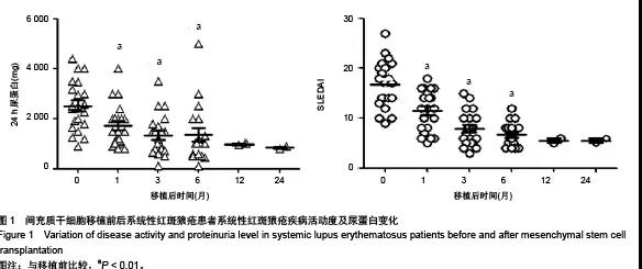 表5 間充質(zhì)干細(xì)胞移植對(duì)SLE患者疾病活動(dòng)度及尿蛋白的影響