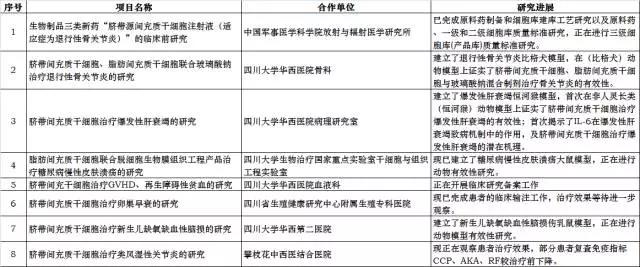 同時(shí),實(shí)驗(yàn)室還與中國(guó)軍事醫(yī)學(xué)科學(xué)院、四川大學(xué)華西醫(yī)院、四川省生殖健康研究中心、四川大學(xué)華西第二醫(yī)院、攀枝花中西醫(yī)結(jié)合醫(yī)院等開(kāi)展臍帶間充質(zhì)干細(xì)胞臨床研究如下: