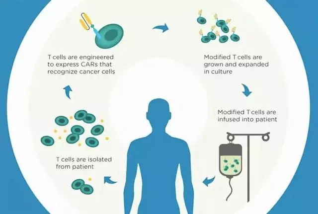 近兩年還有一個(gè)非常熱門(mén)的細(xì)胞治療的方法叫CAR-T技術(shù),簡(jiǎn)單來(lái)說(shuō)它就是一個(gè)人工制造的殺傷性細(xì)胞。我們知道細(xì)胞殺傷的時(shí)候,它要能夠找到腫瘤的靶標(biāo),但在人體的免疫系統(tǒng)當(dāng)中能夠精確識(shí)別腫瘤的這種靶細(xì)胞還是非常少的,所以科學(xué)家就考慮能不能給這些殺傷細(xì)胞裝上一雙眼睛、裝上一根天線讓它更準(zhǔn)確識(shí)別腫瘤細(xì)胞,這樣提高了殺傷的準(zhǔn)確性和效率都。