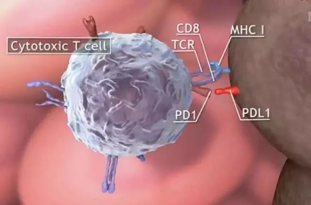 狡猾的腫瘤君會(huì)通過(guò)產(chǎn)生一些抑制性物質(zhì)來(lái)麻痹免疫系統(tǒng),甚至有一些腫瘤還會(huì)有特殊武器,它的細(xì)胞膜上有一種能夠抵抗免疫細(xì)胞的分子叫PDL-1,腫瘤會(huì)通過(guò)PDL-1逐步誘導(dǎo)殺傷性細(xì)胞表達(dá)叫PD-1的分子,兩者一旦結(jié)合就啟動(dòng)免疫細(xì)胞的自殺機(jī)制,讓其失去了對(duì)腫瘤的攻擊力。這就好比汽車上的剎車,簡(jiǎn)單來(lái)說(shuō)就是腫瘤細(xì)胞用PDL-1踩PD-1的剎車。