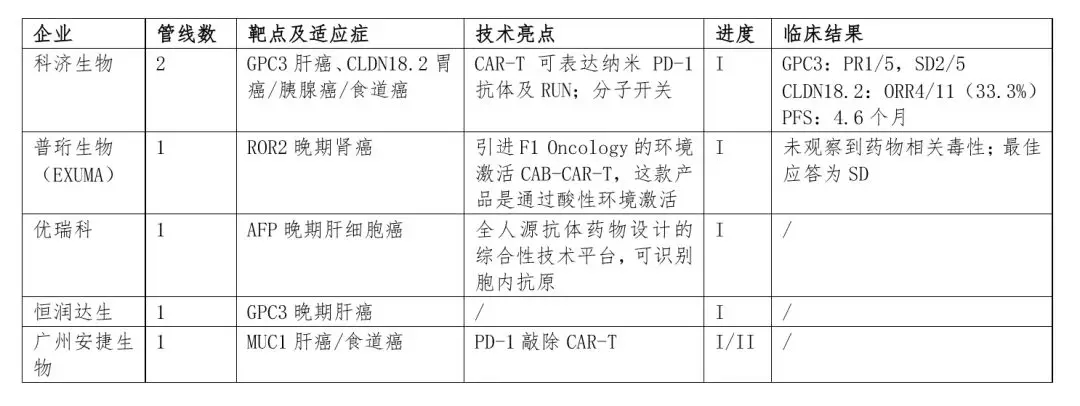 表6 國內(nèi)獲得實體瘤CAR-T臨床批件的企業(yè)
