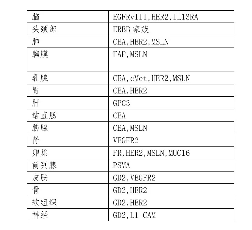 表3 各個實體瘤靶點在腫瘤組織和正常組織中的表達情況